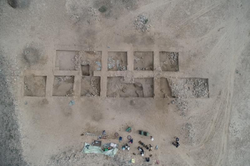 目前,遺址區(qū)和墓葬區(qū)發(fā)掘工作正在有序進行。發(fā)現(xiàn)遺跡有石墻、甕棺、灰堆等,出土遺物有陶片、石器、骨器、毛織品等,陶片中有彩陶。墓葬區(qū)發(fā)現(xiàn)墓葬等,出土遺物有陶片、海貝等。