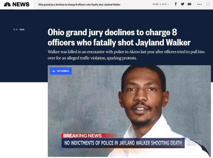 NBC指出,沃克之死引發(fā)了阿克倫數(shù)日的示威活動,并再次引發(fā)了關于警察針對非裔暴力執(zhí)法的抗議。