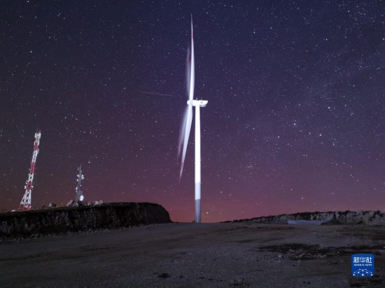 新華社記者日前驅車前往伊沃維克風電場,在一號風機組前停下,眼前景觀從丘陵的柔和舒緩切換成震撼的視覺體驗,只見百米風機塔筒直指藍天,炫目矗立。塔筒上方連接輪轂葉片,凌空欲飛。
