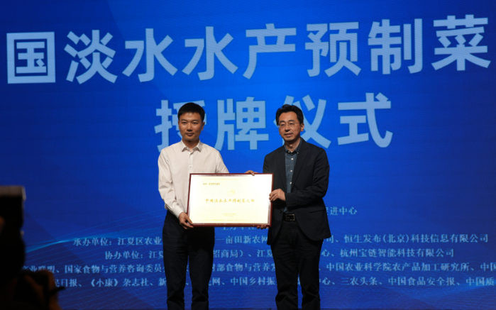 此次高峰論壇中,由中國預(yù)制菜產(chǎn)業(yè)聯(lián)盟執(zhí)行秘書長、一畝田集團(tuán)副總裁彭南峰作為授牌嘉賓,武漢市江夏區(qū)區(qū)委副書記、政法委書記柳新作為代表接受中國淡水水產(chǎn)預(yù)制菜之都授牌。中國預(yù)制菜產(chǎn)業(yè)聯(lián)盟研究院院長昕原、江夏區(qū)區(qū)委書記張斐共同為中國淡水水產(chǎn)預(yù)制菜預(yù)研究院揭牌。