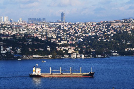 2022年8月7日,一艘從烏克蘭出發(fā)的運(yùn)糧船駛過土耳其伊斯坦布爾博斯普魯斯海峽。新華社記者沙達(dá)提攝