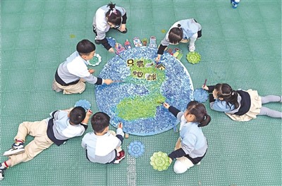 日前,浙江省臺州市仙居縣實驗幼兒園舉行“世界地球日”主題教育活動,通過手繪地球等環(huán)節(jié)引導(dǎo)孩子們從小樹立愛護(hù)地球、人與自然和諧共生的理念。圖為孩子們在“手繪地球”。