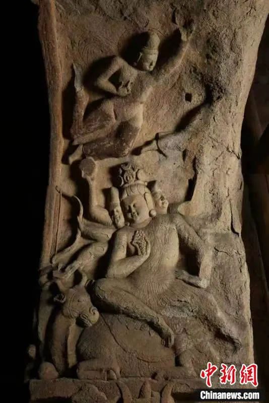 云岡石窟第8窟東側(cè)摩醯首羅天。云岡研究院供圖