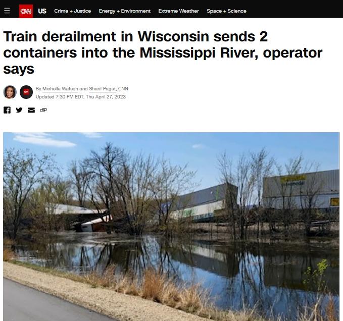 美國(guó)威斯康星州一火車脫軌 多節(jié)車廂掉進(jìn)密西西比河
