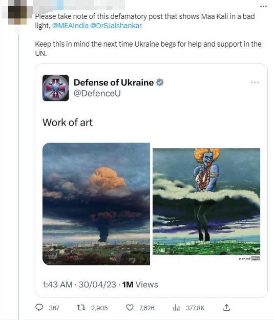 《印度斯坦時(shí)報(bào)》稱(chēng),這張圖被認(rèn)為丑化了印度教女神,是“對(duì)印度教的不尊重”,推文“遭到強(qiáng)烈反對(duì)”“傷害了印度人的感情”。甚至有印度網(wǎng)友呼吁印度官方干預(yù)此事。目前,烏克蘭國(guó)防部已經(jīng)刪除該推文。
