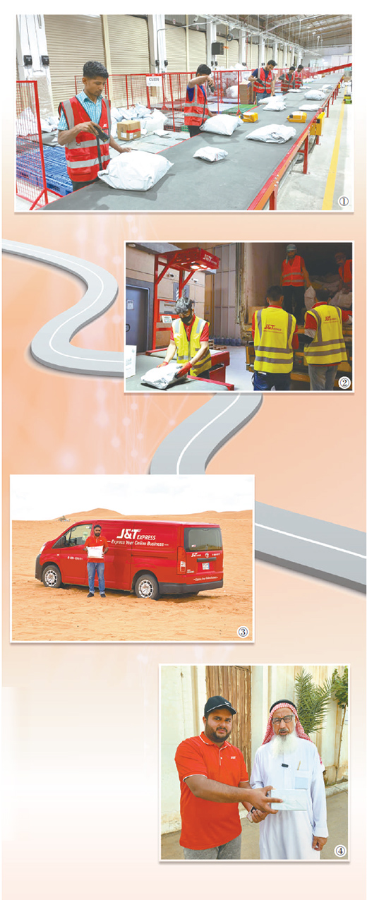 圖①:位于利雅得的轉(zhuǎn)運中心內(nèi),工作人員開始分揀包裹。