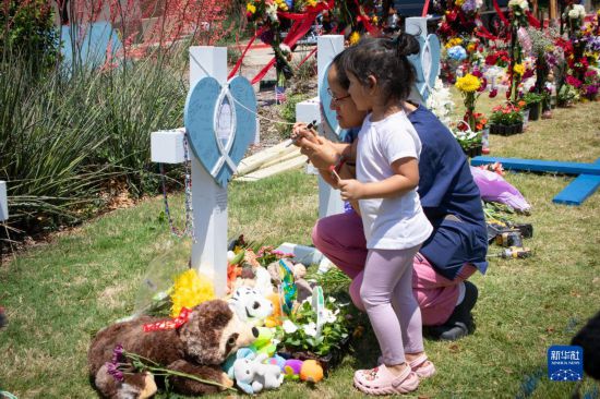 5月8日,在美國得克薩斯州達(dá)拉斯以北城鎮(zhèn)艾倫的購物中心槍擊事件現(xiàn)場(chǎng)附近,一名小朋友準(zhǔn)備在受害者紀(jì)念板上寫下哀思。達(dá)拉斯以北城鎮(zhèn)艾倫的一家購物中心6日發(fā)生槍擊事件,造成包括槍手在內(nèi)的9人死亡、7人受傷。新華社發(fā)(田丹攝)