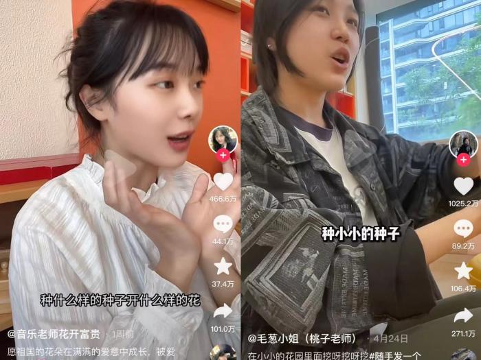 中新網(wǎng)查詢了她們?cè)诙桃曨l平臺(tái)上最早發(fā)布時(shí)間,桃子老師是在4月24日,黃老師是在4月28日。