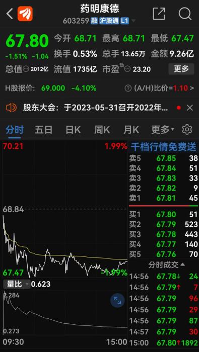 17日,藥明康德、藥明生物股價(jià)均出現(xiàn)下跌。截至17日收盤,藥明康德A股股價(jià)跌1.51%,H股股價(jià)跌超4%,藥明生物股價(jià)跌幅接近4%。藥明康德總市值超過2000億元人民幣,藥明生物總市值超1897億港元。(完)