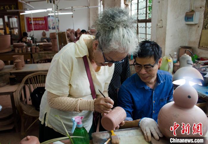 中新社欽州5月17日電 (翟李強(qiáng))“你泥中有我,我泥中有你?!闭趶V西參訪的臺灣花蓮縣秀林鄉(xiāng)陶樸閣美學(xué)才藝發(fā)展協(xié)會理事長連美惠一邊哼著歌,一邊向記者介紹花蓮陶瓷與廣西欽州坭興陶“連親”的故事,她很開心再次來到廣西“再續(xù)前緣”。