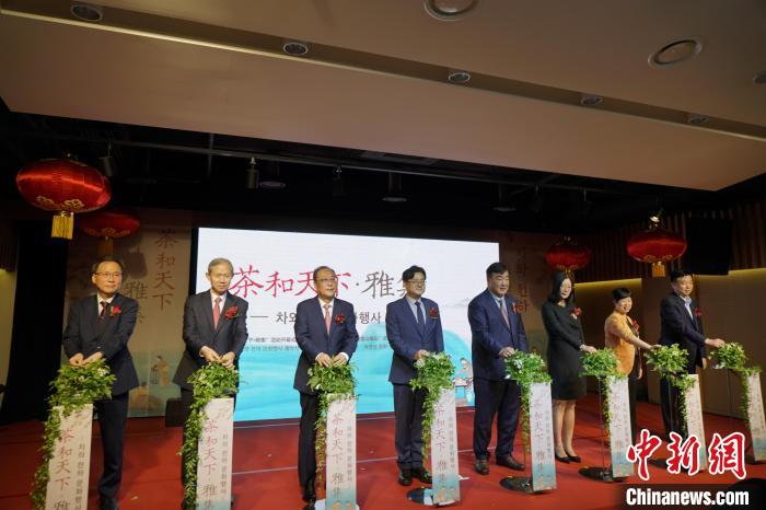 當(dāng)?shù)貢r間23日,“茶和天下·雅集”活動開幕式暨茶韻山水——“綠水青山就是金山銀山”浙江省文旅圖片展在首爾中國文化中心舉行。圖為活動啟幕儀式。中新社記者 劉旭 攝