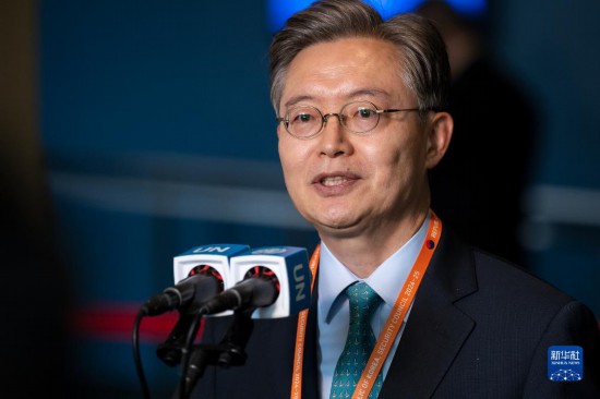 6月6日,在位于紐約的聯(lián)合國(guó)總部,韓國(guó)常駐聯(lián)合國(guó)代表黃浚局在韓國(guó)當(dāng)選聯(lián)合國(guó)安理會(huì)非常任理事國(guó)后在記者見面會(huì)上講話。新華社發(fā)(聯(lián)合國(guó)供圖/洛伊·費(fèi)利佩攝)