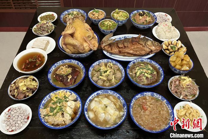 “四八席”有24道菜。即:四鋪桌、四壓桌、兩大件、八大碗、四小碗、兩糕點?!埼闹O 攝