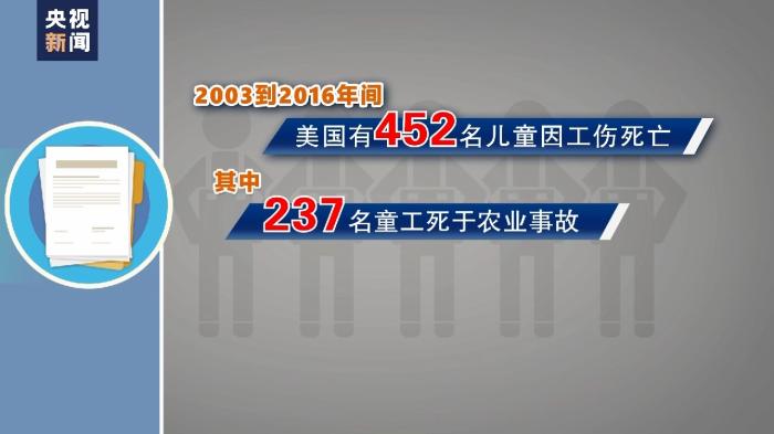 農(nóng)業(yè)領(lǐng)域是美國(guó)雇傭童工的重災(zāi)區(qū)之一。據(jù)美國(guó)非營(yíng)利組織“農(nóng)場(chǎng)工人就業(yè)項(xiàng)目聯(lián)合會(huì)”提供的數(shù)據(jù),美國(guó)仍有50萬(wàn)至80萬(wàn)名童工在農(nóng)場(chǎng)工作。農(nóng)場(chǎng)勞作繁重、條件艱苦,童工還常被置于因天氣、農(nóng)藥及使用農(nóng)具農(nóng)機(jī)所產(chǎn)生的危險(xiǎn)中。《華盛頓郵報(bào)》報(bào)道,2003年至2016年間,美國(guó)有452名兒童因工傷死亡,其中237名童工死于農(nóng)業(yè)事故。