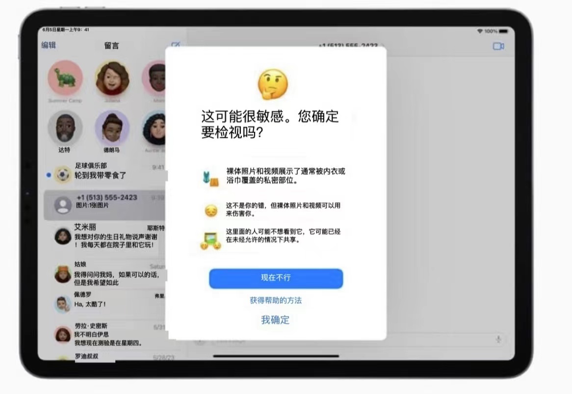 另外,值得注意的是,在近日蘋果發(fā)布的隱私更新中,蘋果對(duì)隔空投送等又進(jìn)一步更新。當(dāng)用戶收到不良信息會(huì)被提醒“這可能很敏感,你確定要檢視嗎?”