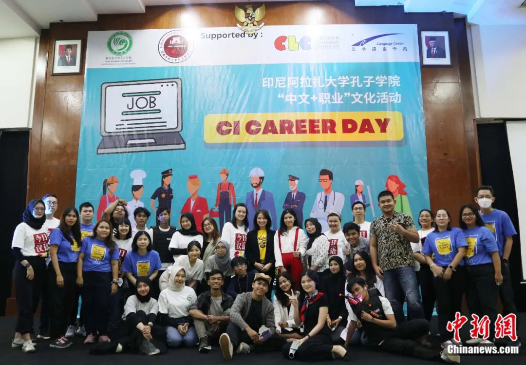 2023年3月,印尼阿拉扎大學(xué)孔子學(xué)院與中國福建師范大學(xué)印尼校友會在雅加達(dá)共同舉辦“中文+職業(yè)”文化活動。學(xué)員們通過情景劇表演,用中文表達(dá)了對教師、警察、醫(yī)生、工程師、廚師等不同職業(yè)的認(rèn)識和理解。印尼阿拉扎大學(xué)孔子學(xué)院 供圖