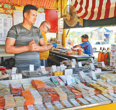 古巴首都哈瓦那一個(gè)市場內(nèi),商販正在等待顧客前來購買調(diào)料。