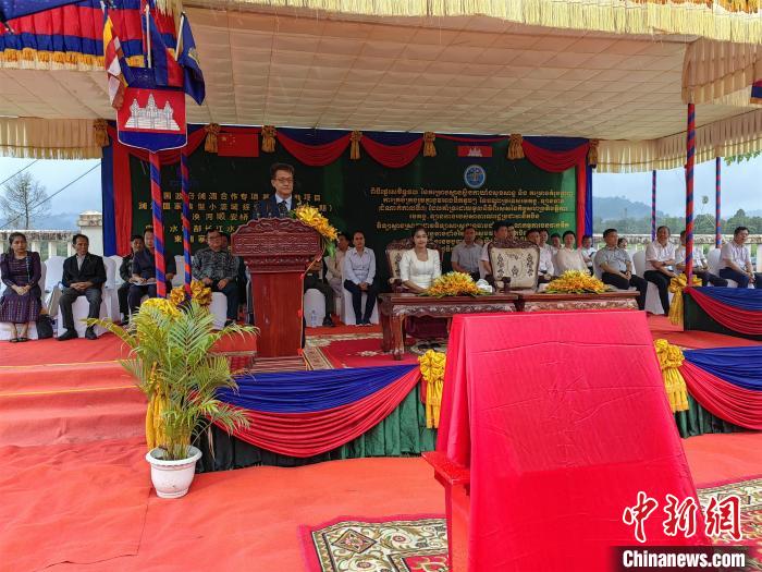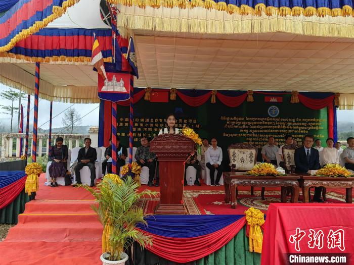 中新社金邊6月19日電 (記者 楊強(qiáng))當(dāng)?shù)貢r(shí)間6月18日,瀾湄合作專(zhuān)項(xiàng)基金“瀾湄國(guó)家典型小流域綜合治理示范(三期)”項(xiàng)目俄勒塞村成果移交儀式在柬埔寨國(guó)公省莫邦縣舉行。中國(guó)駐柬埔寨大使館公使銜參贊趙海燕、柬埔寨國(guó)公省省長(zhǎng)密杜娜·布通以及當(dāng)?shù)馗鹘缑癖?00余人出席。