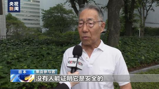集會(huì)參與者:說(shuō)是“處理水”實(shí)則是污染水,里面含有大量的放射性物質(zhì)。如果真的是安全的話,那請(qǐng)他們用那個(gè)水洗澡,去使用它,用它做飯,去喝它,這樣生活五年的話應(yīng)該就清楚了。像這樣,沒有任何人能說(shuō)它實(shí)際上是安全的,沒有人能證明它是安全的。