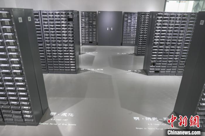 在基因庫(kù)內(nèi),被收集的古瓷片被制成標(biāo)本形態(tài)放入小盒中,按照年代劃分存入柜中。中新社記者 劉力鑫 攝