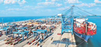阿聯(lián)酋正致力于成為全球物流中心。圖為近日,該國(guó)哈利法港一片繁忙景象。