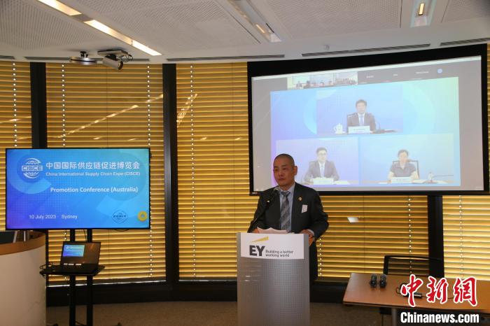 中新社悉尼7月10日電 (記者 顧時(shí)宏)首屆中國國際供應(yīng)鏈促進(jìn)博覽會(鏈博會)澳大利亞站路演活動(dòng)10日下午在悉尼以線上線下相結(jié)合的方式舉行。