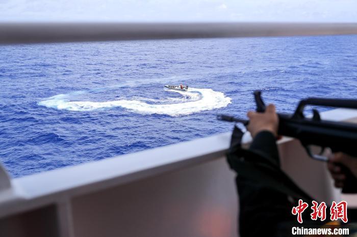 兩發(fā)紅色信號(hào)彈升空,一聲長(zhǎng)汽笛響徹海域。指揮所通過16國(guó)際頻道用英語向高速接近的“海盜艇”發(fā)出警告:“你迅速離開,否則后果自負(fù)?!彪S船取證人員全程照相、錄像取證。