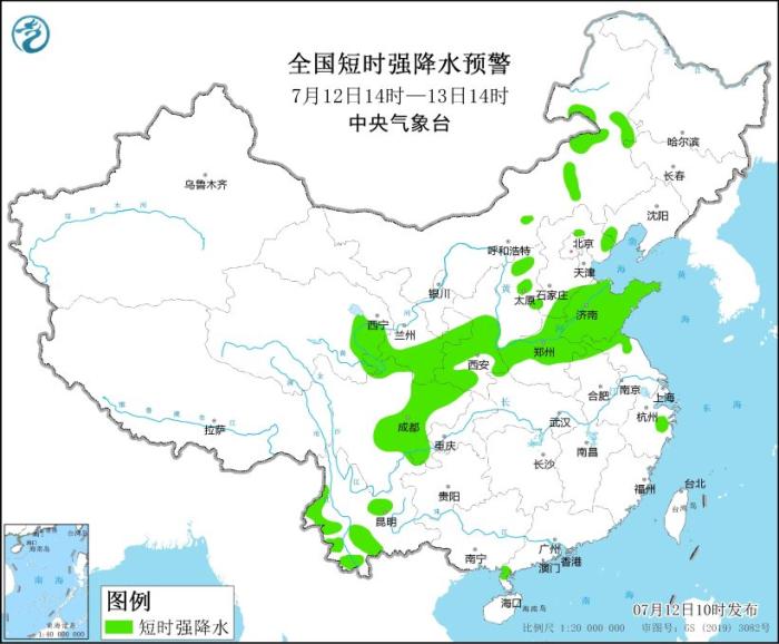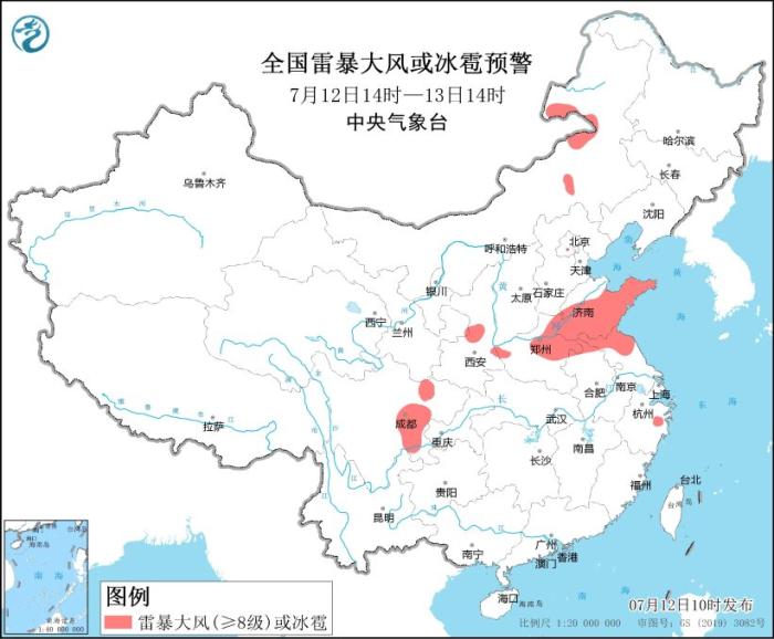 中新網(wǎng)7月12日電 據(jù)中央氣象臺網(wǎng)站消息,中央氣象臺7月12日10時繼續(xù)發(fā)布強對流天氣藍色預(yù)警:預(yù)計7月12日14時至13日14時,內(nèi)蒙古中東部、陜西中部、山東大部、河南東部、安徽北部、江蘇北部、四川盆地中西部等地的部分地區(qū)將有8-10級雷暴大風或冰雹天氣;內(nèi)蒙古中東部、青海東部、甘肅東部和南部、陜西中南部、山西中北部、河北南部、山東、河南中北部、安徽北部、江蘇北部、四川盆地西部、云南西南部等地的部分地區(qū)將有短時強降水天氣,小時雨量30-50毫米,局地可達60毫米以上。