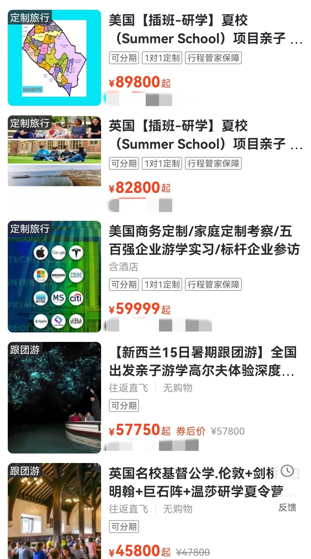 低至100多元的一日研學,高到近9萬元的美國插班研學,打開某在線服務平臺,各種研學項目應有盡有。