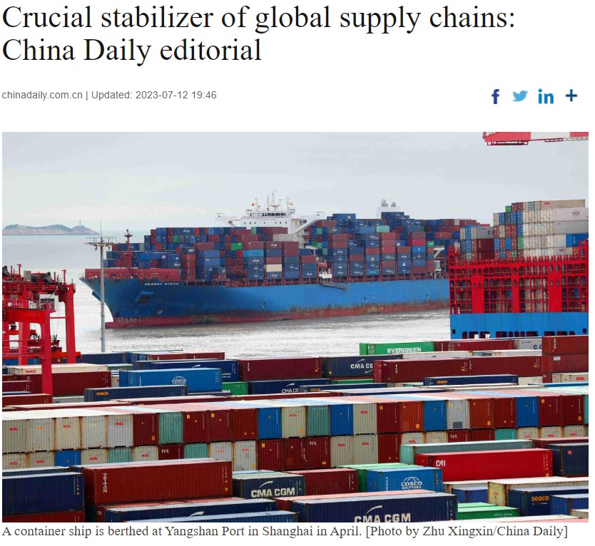 盡管備受非議,但中國始終頂住壓力,致力于維護全球供應鏈安全穩(wěn)定,尤其是在俄烏沖突、全球通脹、大宗商品持續(xù)高位的背景之下。多年來,中國一直是全球供應鏈的“穩(wěn)定器”,積極與其他國家開展貿(mào)易,并利用其制造大國的優(yōu)勢,向全球制造商提供了大量原材料和零部件。