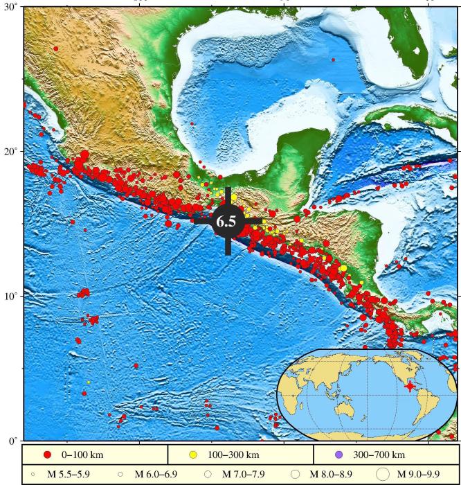 中新網(wǎng)7月14日電 據(jù)中國自然資源部海嘯預(yù)警中心消息,2023年07月14日17時29分(北京時間),墨西哥恰帕斯州沿岸近海海域(15.18°N,93.86°W)發(fā)生6.5級地震,震源深度為15千米。