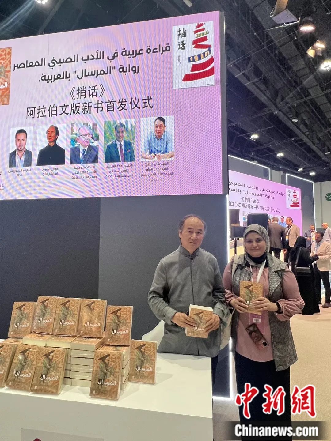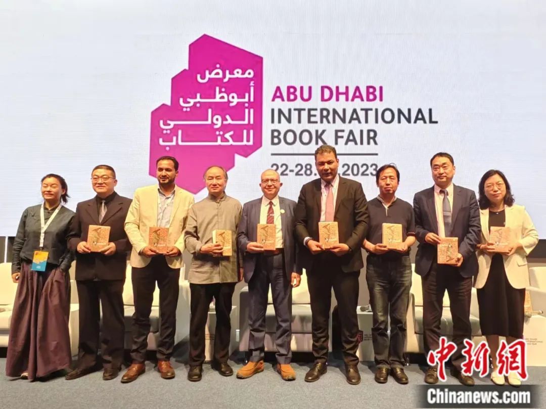 在阿布扎比國際書展上,譯林出版社與埃及??诉~特文化集團聯(lián)合舉辦《捎話》阿拉伯文版新書首發(fā)儀式。譯林出版社 供圖