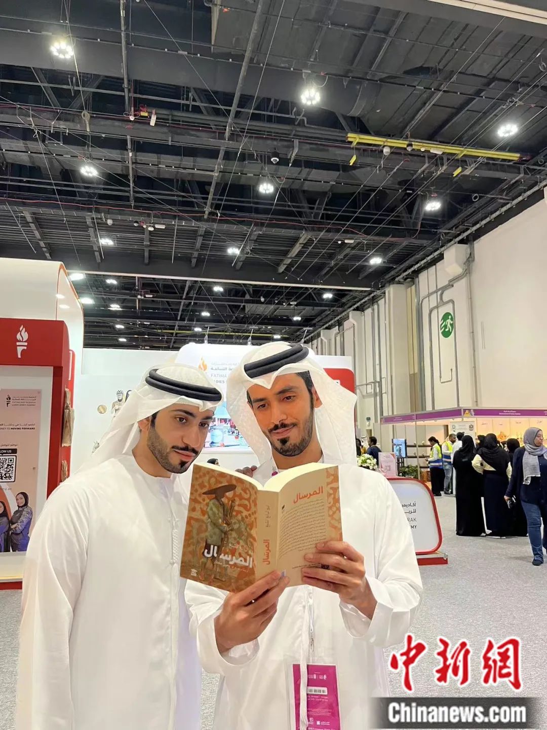 在阿布扎比國際書展上,阿拉伯文學愛好者閱讀中國文學作品《捎話》。譯林出版社 供圖
