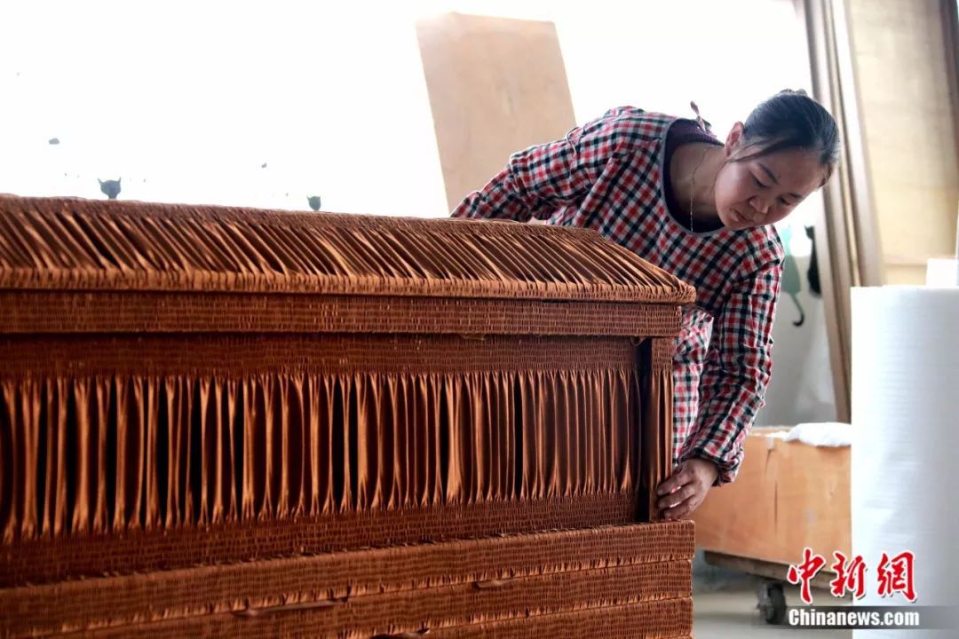 資料圖:曹縣工人正在制作棺木。梁犇 攝