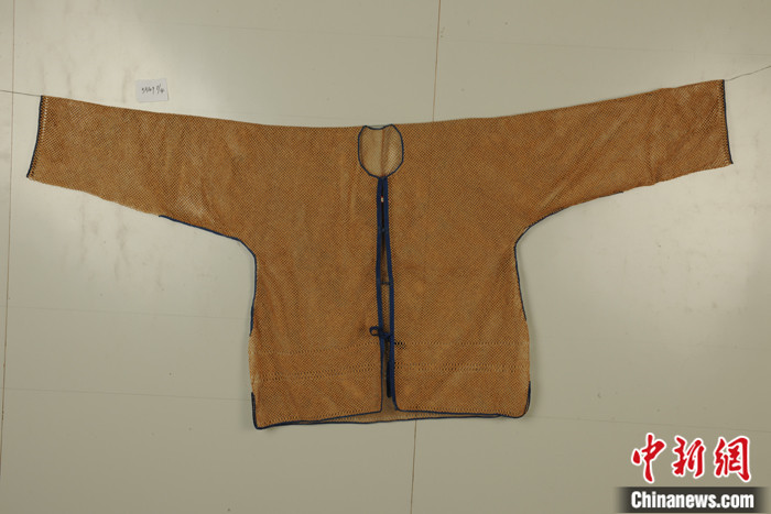 據(jù)安徽博物院副研究館員吳艷介紹,在元代就有關(guān)于竹汗衫的記載,由極細小的竹絲制成,因竹細如絲,亦稱“竹絲衣”。各地竹汗衫的型制較為固定,或?qū)篑R褂,或?qū)篑R甲,衣服邊緣處均用布料鑲邊,長袖衫腋窩處為了服帖,沒有直接無縫編織,而是開口再縫合。