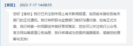 銀行客服回復(fù)截圖。