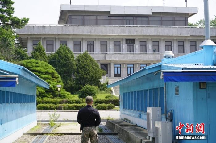 圖為韓朝邊境板門店共同警備區(qū)(JSA),韓方一側的士兵面向朝方警戒執(zhí)勤。 中新社記者 劉旭 攝