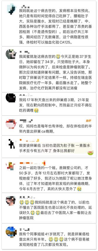 “卵巢屬于深部器官,發(fā)病不易發(fā)現(xiàn),且患者得的是上皮性卵巢癌,這種癌進(jìn)展非???,早期在腹腔內(nèi)播散,會(huì)在網(wǎng)膜轉(zhuǎn)移,迅速產(chǎn)生大量腹水,目前還沒(méi)有很好的卵巢癌篩查手段?!?楊玲玲解釋。