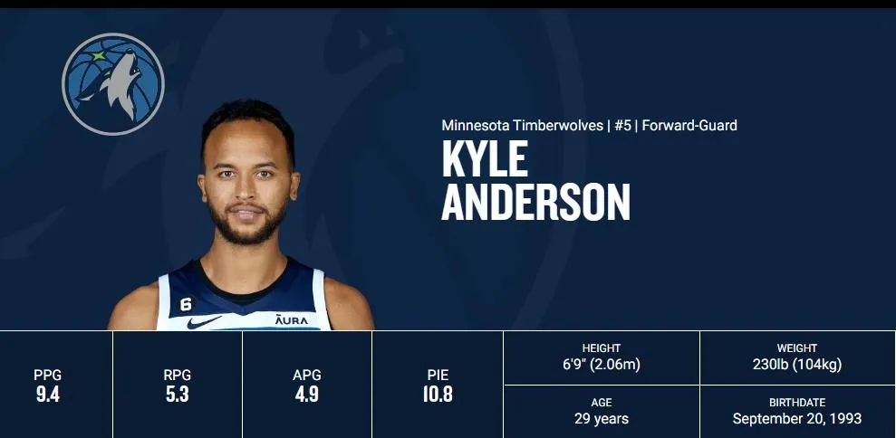 1993年9月出生的安德森將年滿30周歲,身高兩米零六的他于2014年選秀中在第1輪第30順位被馬刺隊(duì)選中,如今效力于森林狼的他已是聯(lián)盟中身手最為全面的鋒衛(wèi)搖擺人之一。