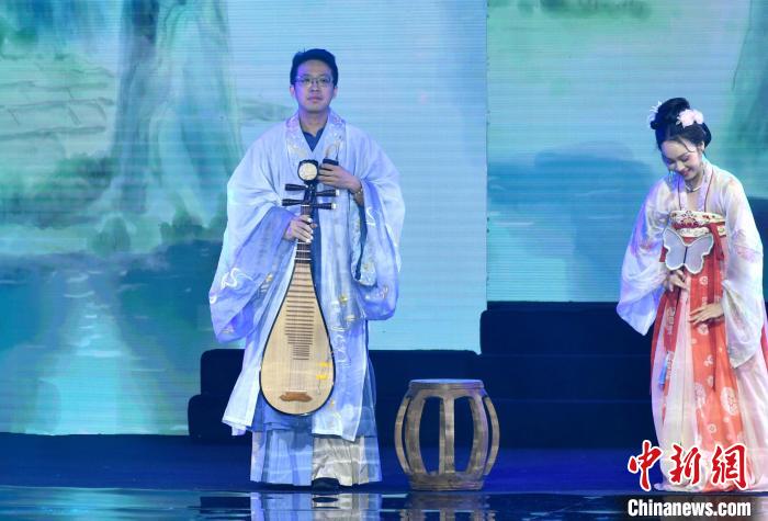圖為魏辰運(左)在福州舉辦的海峽漢服節(jié)上登臺表演琵琶彈奏。呂明 攝