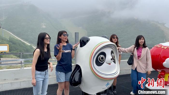 7月29日,海外臺胞青年在冬奧村“打卡”冰墩墩。中新社記者 張楊彬 攝