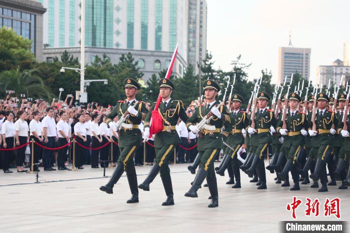 8月1日清晨,南昌八一廣場(chǎng)上人山人海,站滿前來(lái)觀看升國(guó)旗儀式的民眾。姜濤 攝