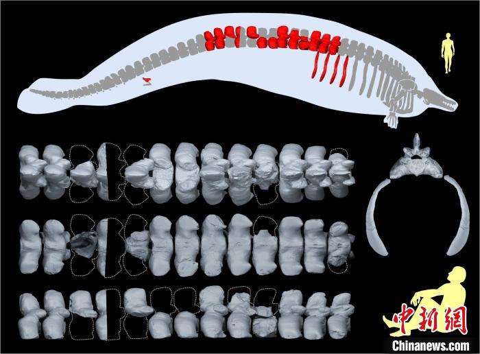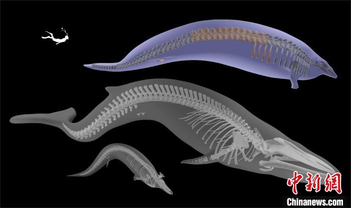 論文通訊作者、德國(guó)斯圖加特州立自然博物館Eli Amson和合作者描述了一個(gè)新龍王鯨科(basilosaurid whale)物種,估計(jì)骨骼重量超過(guò)任何已知的哺乳動(dòng)物或海洋生物。他們將這一物種命名為P. colossus,并根據(jù)部分骨骼為這個(gè)動(dòng)物建立了模型,這些骨骼包括13塊脊椎、4塊肋骨和1塊髖骨,發(fā)現(xiàn)于秘魯南部,估計(jì)有3900萬(wàn)年歷史。