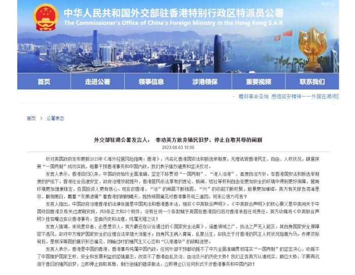 外交部駐港公署發(fā)言人:奉勸英方放棄殖民舊夢(mèng),停止自取其辱的鬧劇