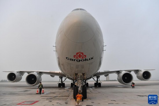8月1日,在中國鄭州新鄭國際機場,一架盧森堡貨航貨機裝貨完畢準備起飛。新華社記者 李嘉南 攝
