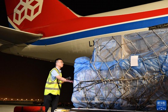 這是2020年3月22日,運送防疫物資的鄭州—盧森堡航線貨機在中國鄭州新鄭國際機場裝機準備起飛的資料照片。新華社記者 李嘉南 攝