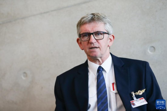 8月1日,在盧森堡貨航總部,盧森堡貨航飛行運營執(zhí)行副總裁克洛德·澤倫接受記者采訪。新華社記者 鄭煥松 攝