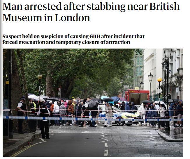 中新網(wǎng)8月9日電 據(jù)英國《衛(wèi)報(bào)》報(bào)道,當(dāng)?shù)貢r(shí)間8日,英國倫敦大英博物館附近發(fā)生持械傷人事件,一名男子被刺傷,嫌犯已被警方逮捕。