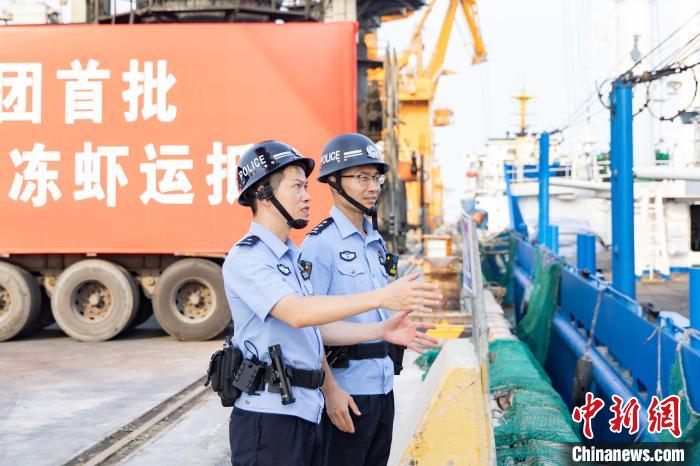 中印尼“兩國雙園”國際貨運(yùn)航線首航,福清邊檢站民警在執(zhí)勤中。王朔攝