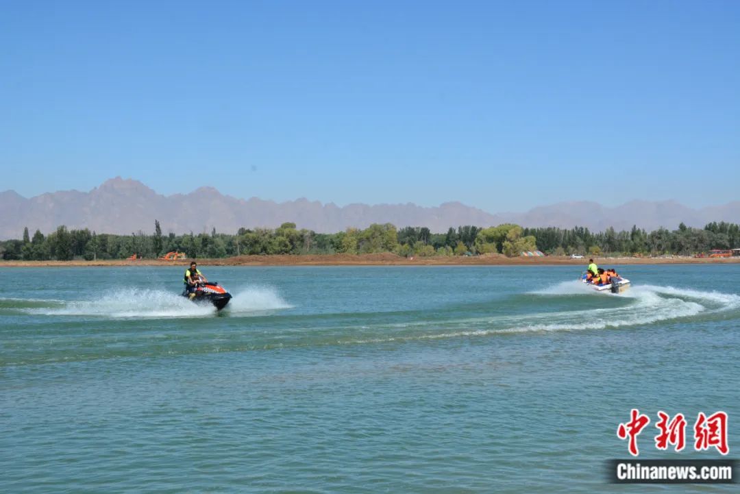 圖為烏蘭布和沙海湖景區(qū)汽摩運(yùn)動。汪巧枝 攝